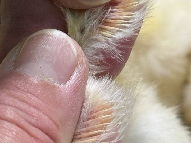 孵卵場内でふ化したヒヨコのオス・メスを羽の特徴で見分けます。
