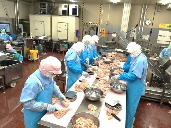 主に唐揚げ、ローストチキンレッグやチキンナゲットなど身近な食品をつくるお仕事です。