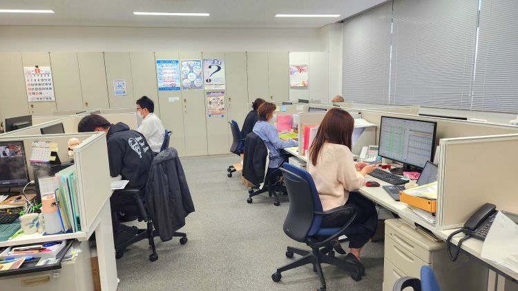 現在、営業事務は5名体制(男性3人女性2人)で、40~50代のベテランスタッフが活躍中!